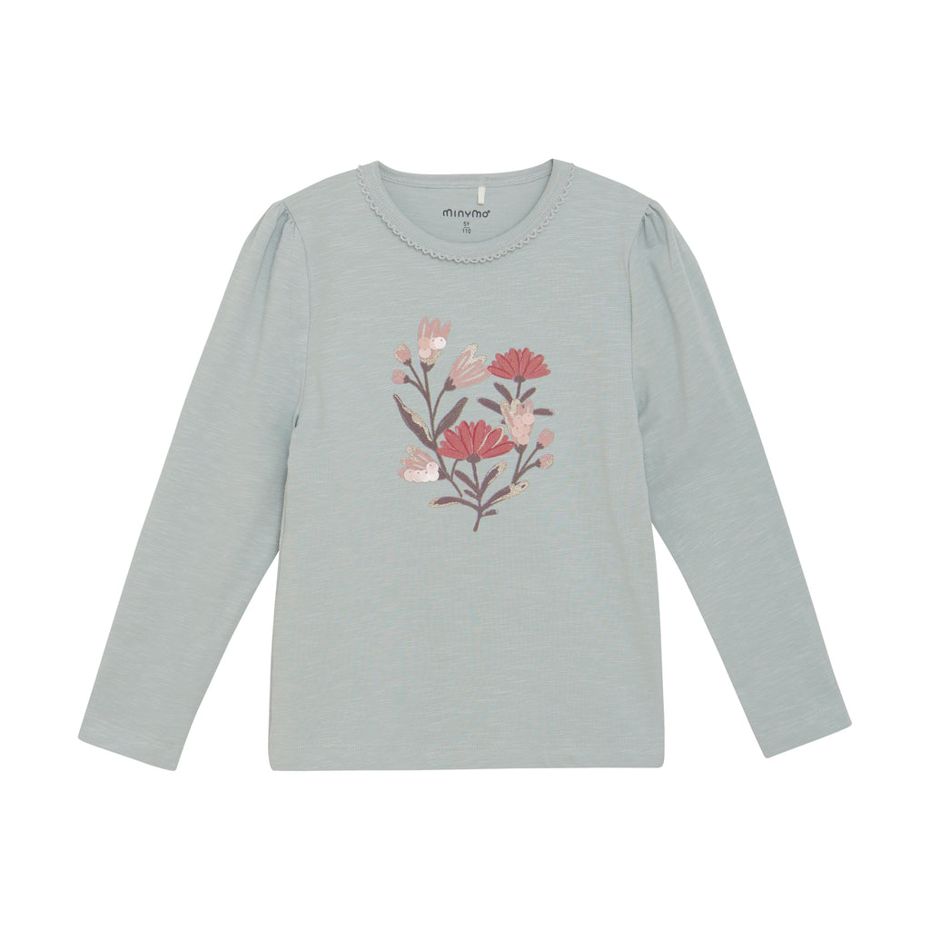 Langarmshirt, eisblau/Blumenprint