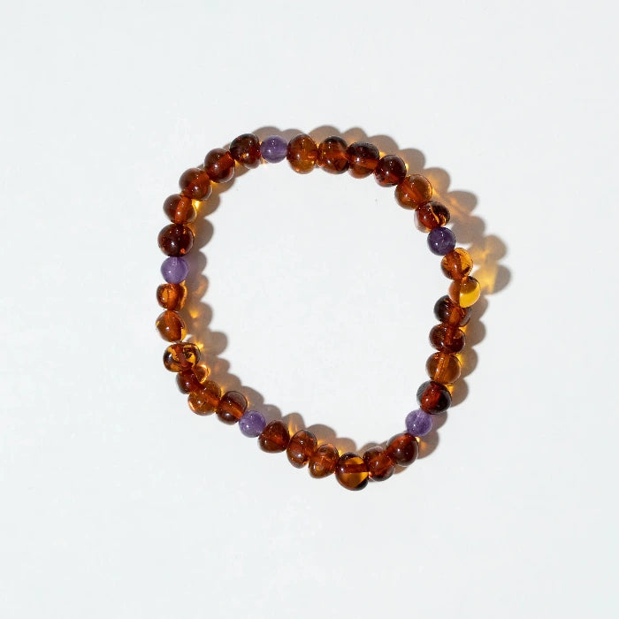 Polierter Karamellbernstein und tiefvioletter Amethyst