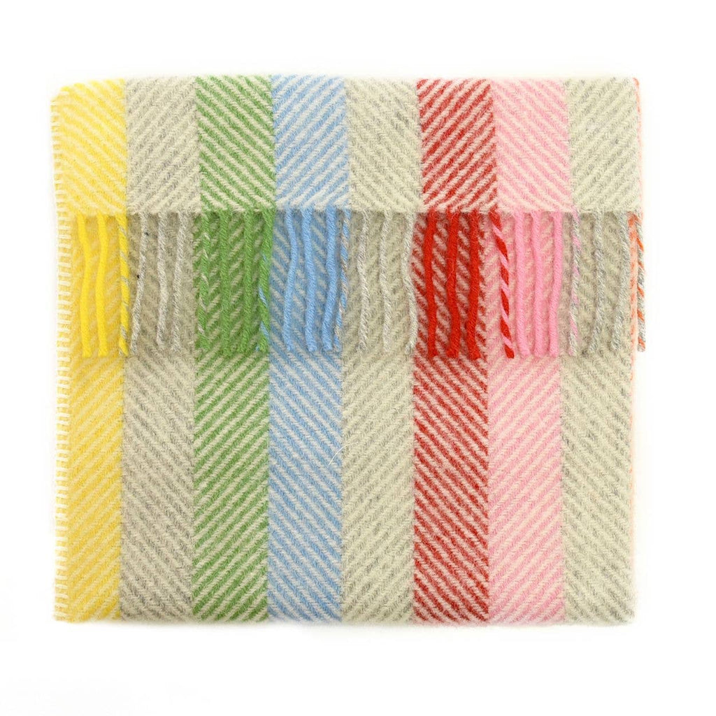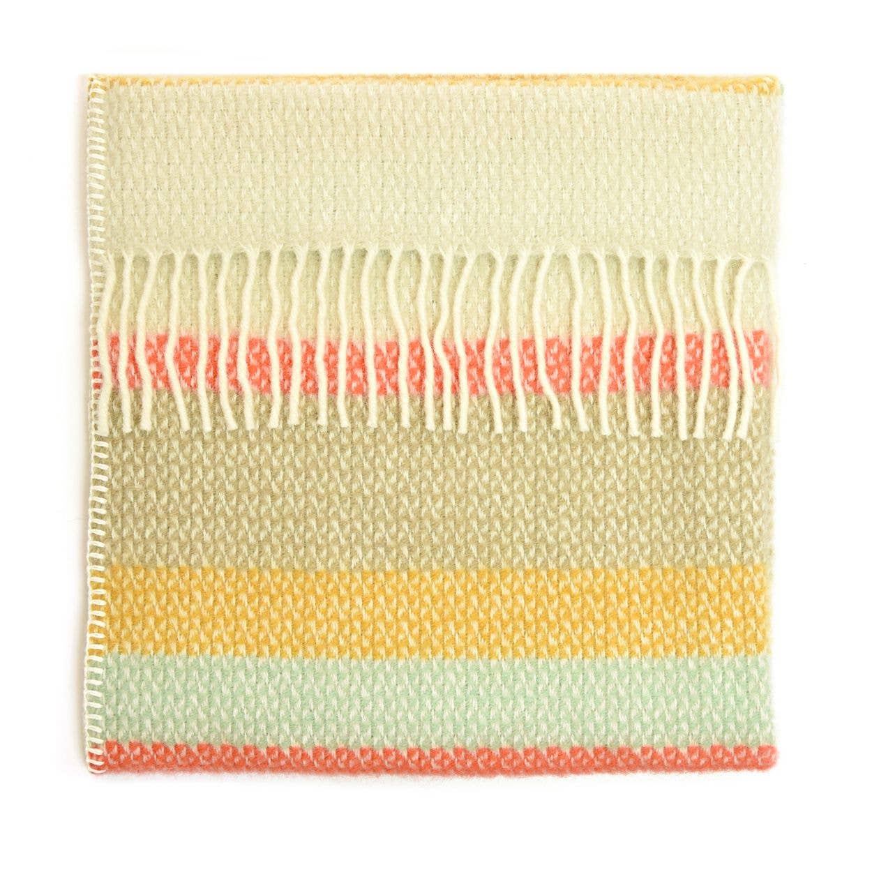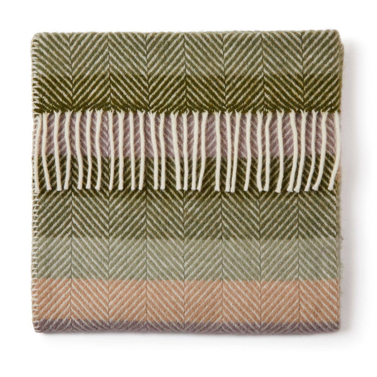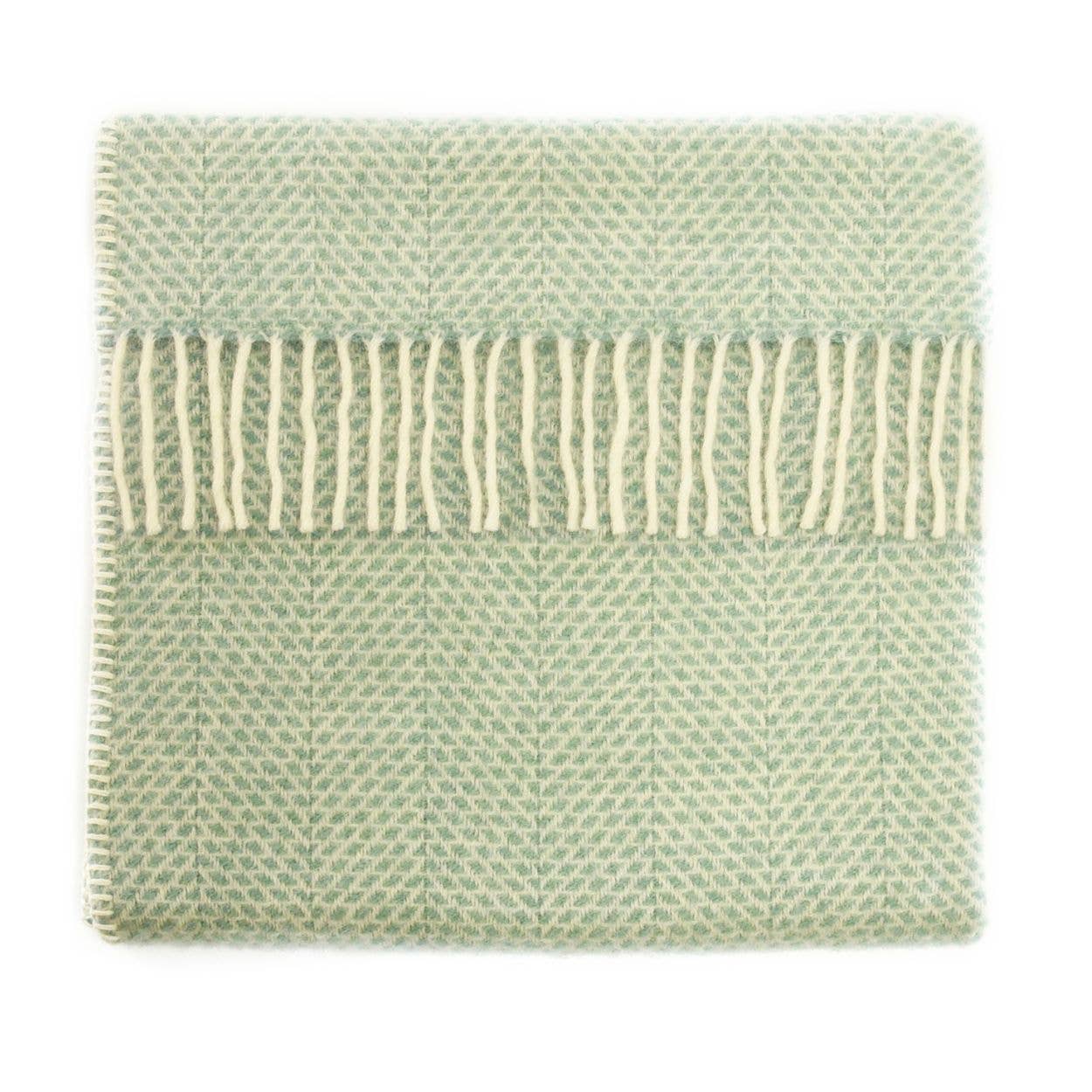 Jede Decke wird von unserem Expertenteam aus Webern aus reiner neuer Wolle gefertigt, mit Fransenquasten und einem blanket-gestickten Rand versehen.