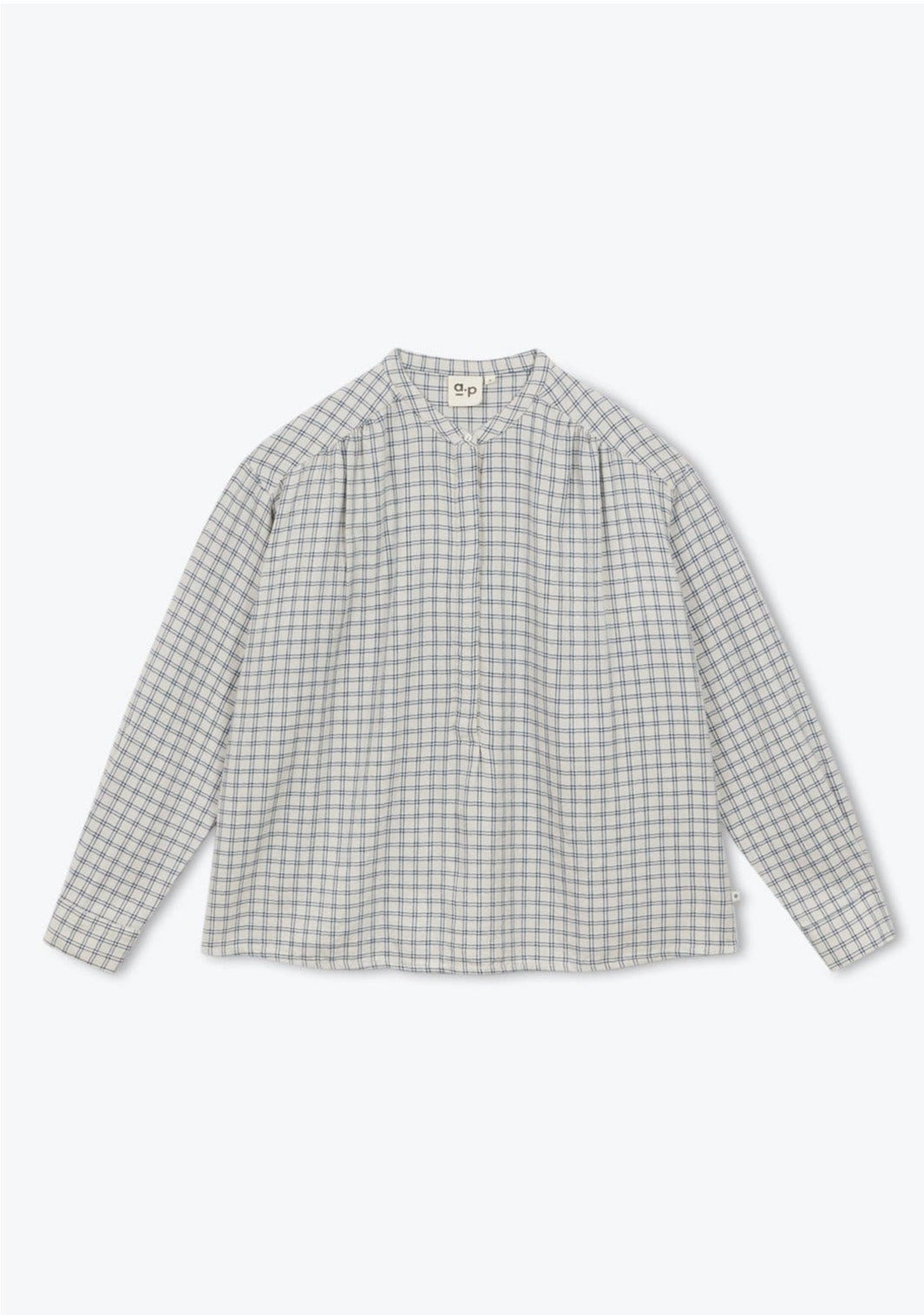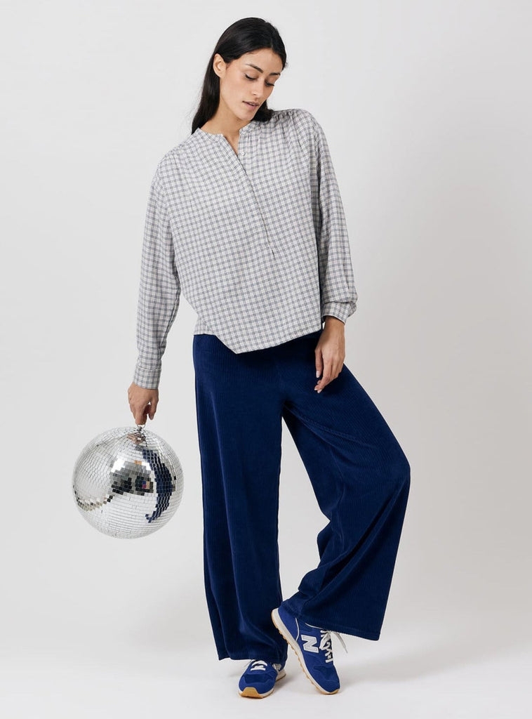 • Thérèse ist 1,78 m groß und trägt die marineblaue Bluse in Größe S.