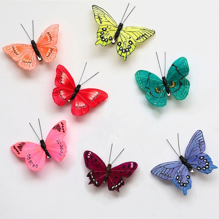 Ob als Tischdekoration, zum Anstecken von Pflanzen, als i-Tüpfelchen für Geschenkverpackungen oder zum Anstecken an den Weihnachtsbaum - die Stylingmöglichkeiten sind endlos. Die Schmetterlinge passen gut zu unserem Sortiment an Feder-Vogel-Clip-Dekorationen.