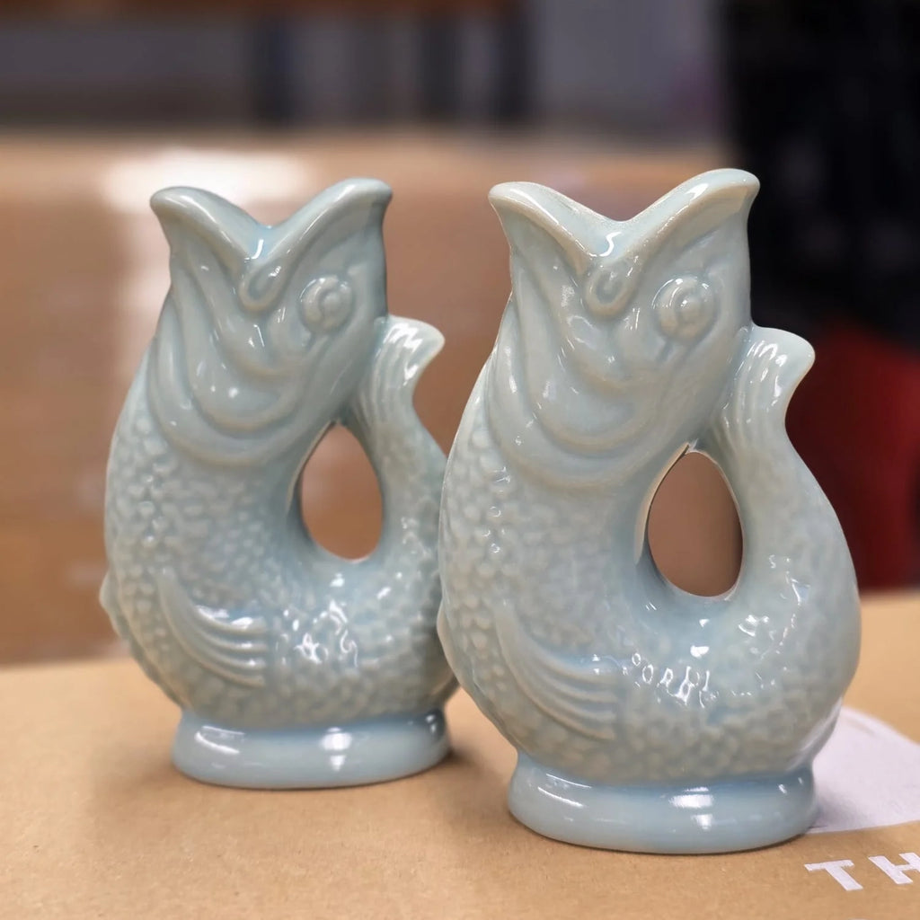 Zwei charmante Mini-Fische, handgefertigt in Stoke-on-Trent. Die Gluckigluck Salz- & Pfefferstreuer verbinden englische Tradition mit zeitlosem Design – glasiert, glänzend und voller Charakter. Verpackt in einer süssen Giftbox – perfekt zum Verschenken. Vom Original: The Gluggle Jug Factory.