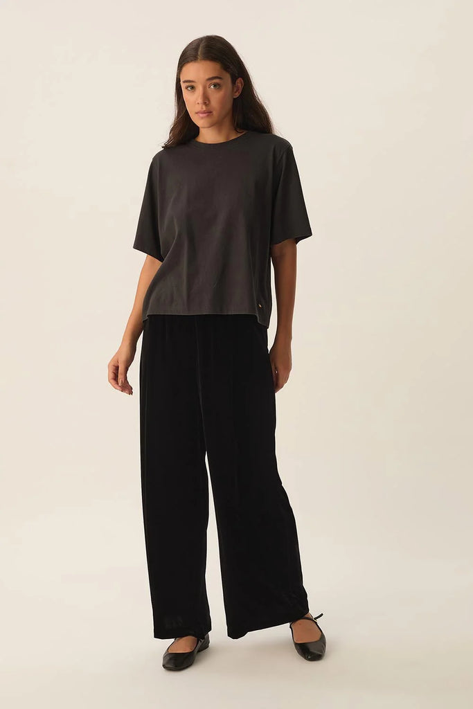 Mit ihrem elastischen Bund, dem weiten Bein und dem weichen Fall bringt die weite Hose Iris den Samtstoff wieder in Mode. Dieses vielseitige Modell ist ebenso bequem wie schick und wertet Ihre Festtagsoutfits und Tageslooks auf, wenn Sie es mit einem Oversize-Pullover oder einer Bluse kombinieren.