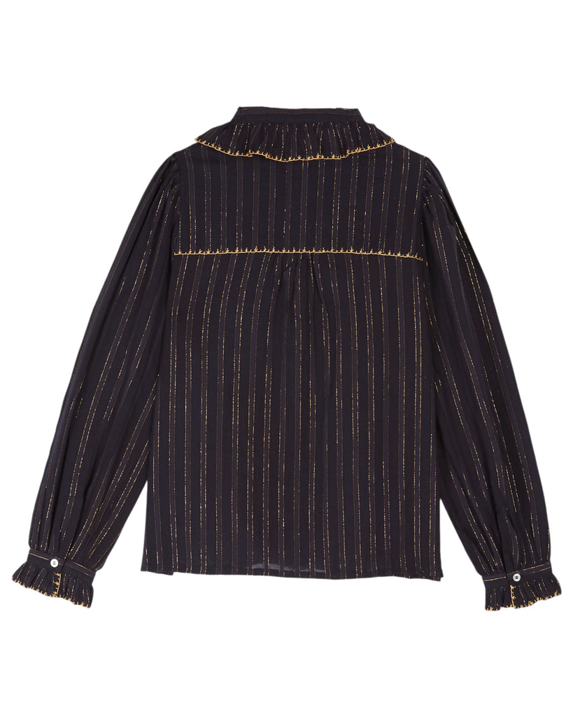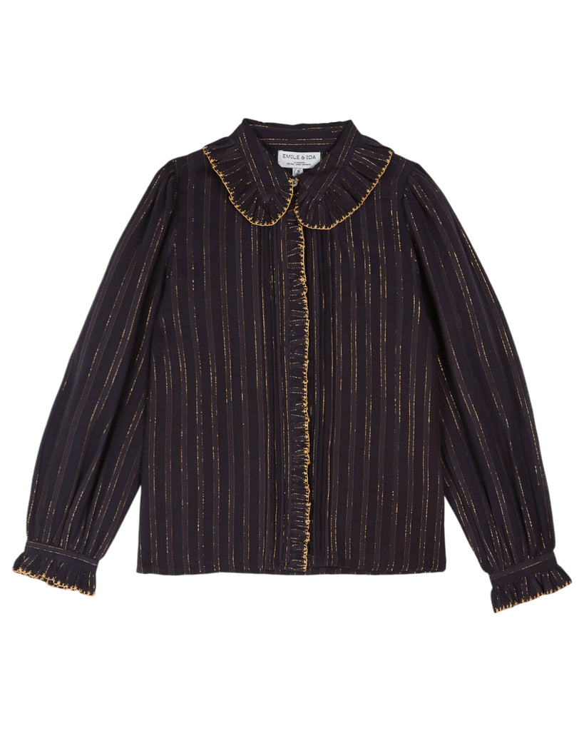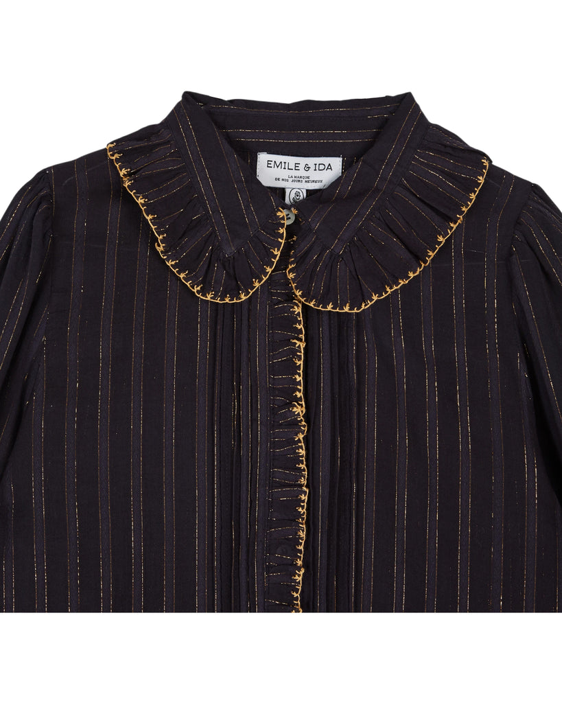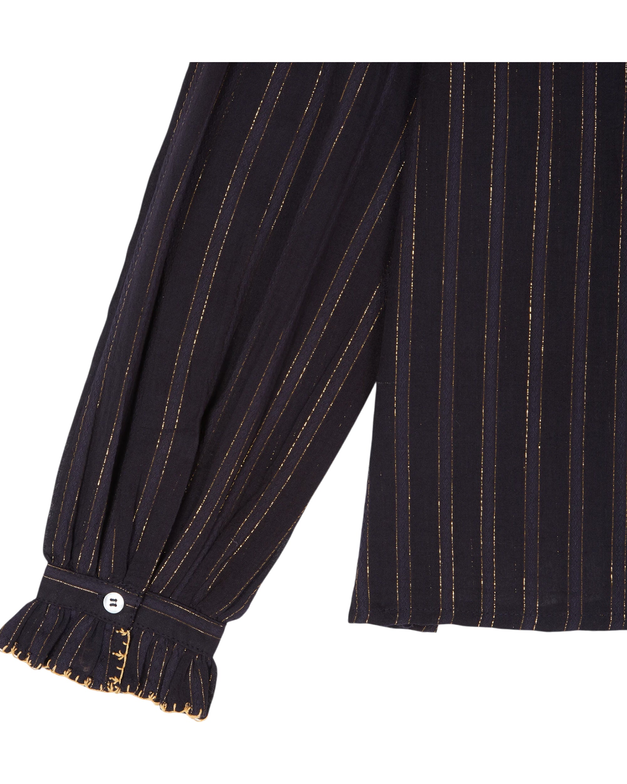 IDA-CHRISTELLE EMBROIDERED FLOWER COLLAR BLOUse, MARINE