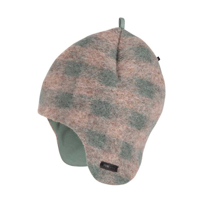 Inka Mütze aus Wolle, salbei kariert