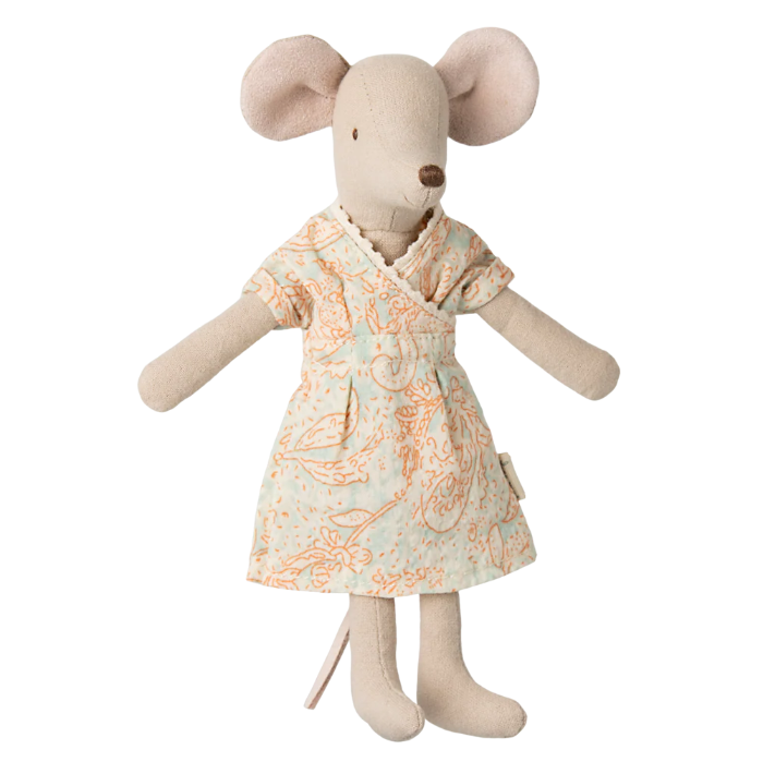Ein klassischer Maileg-Artikel; Mama Maus, jetzt in neuen Kleidern. Diese Maus passt zu Möbeln und Accessoires in der Mäuse Größe. Du kannst noch mehr Kleidung separat kaufen, Kleidung in Größe Mama / Papa passt zu dieser Maus.