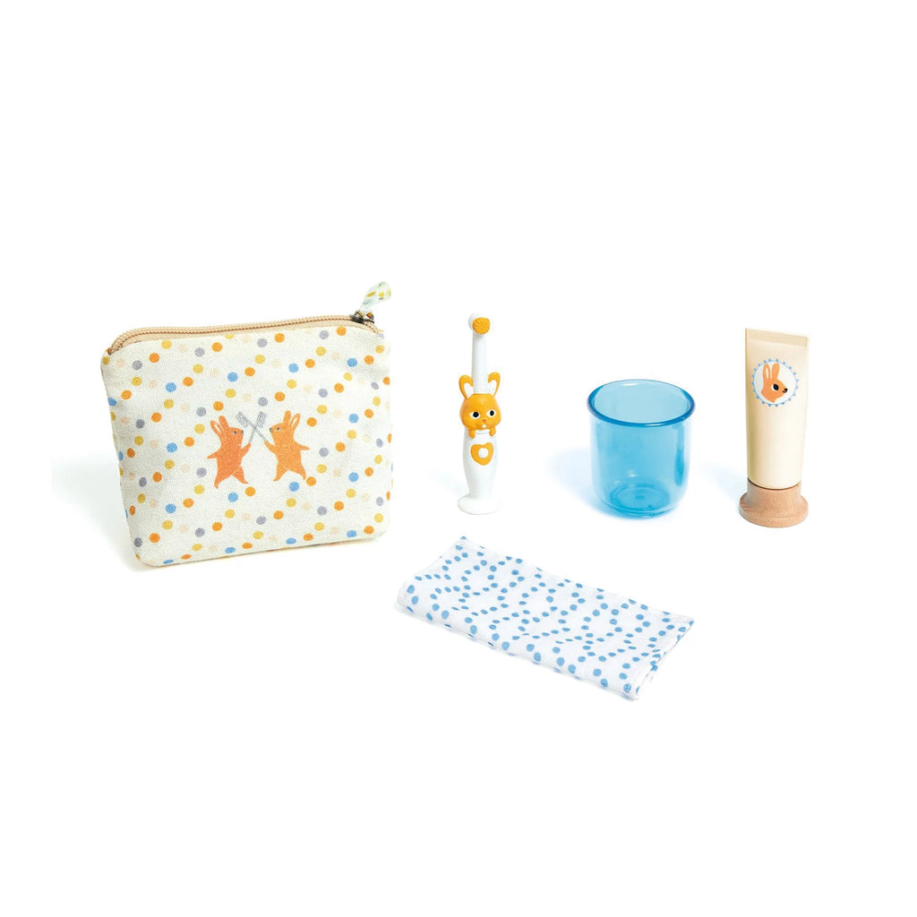 Dieses süsse Necessaire enthält alles was deine Pomea Puppe zum Zähneputzen braucht. Zahnbürste, Wasserbecher, Zahnpastatube und ein kleines Handtuch. Natürlich kannst du auch deine eigene Zahnbürste und Utensillien in dem Neccessire versorgen.