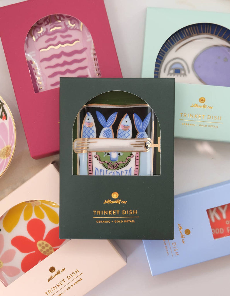 Ein bei Fans beliebtes Geschenk – Unsere Keramikschälchen sind die perfekte Ablage für Ihren Nachttisch oder Ihre Kommode. Weißes Keramik ist mit unseren bunten, handbemalten Designs verziert, und wir haben den Rand mit 10k Gold für zusätzlichen Flair versehen. Perfekt verpackt in plastikfreien Geschenkboxen, hübsch genug, um sie ohne Verpackung zu verschenken!