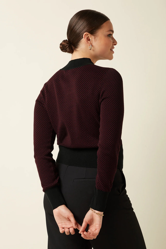 Das Nilde Top hat einen hochgerippten Saum, der die Taille betont.