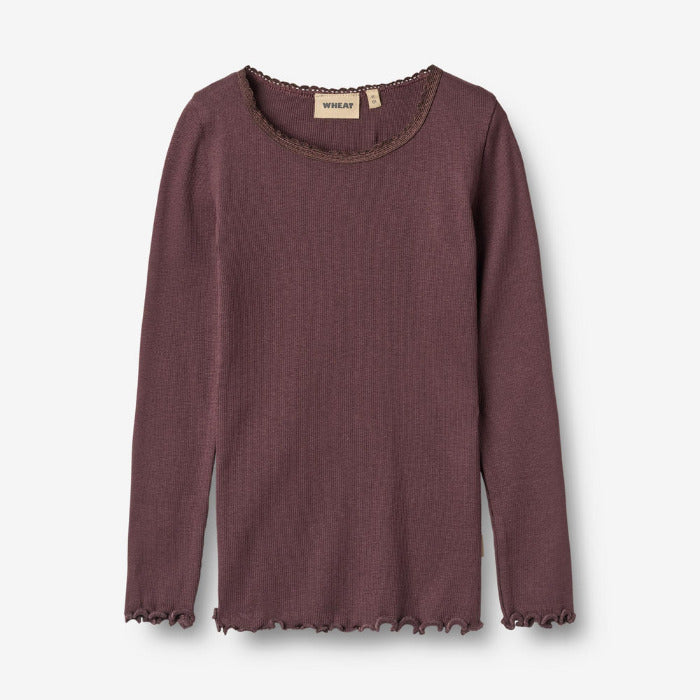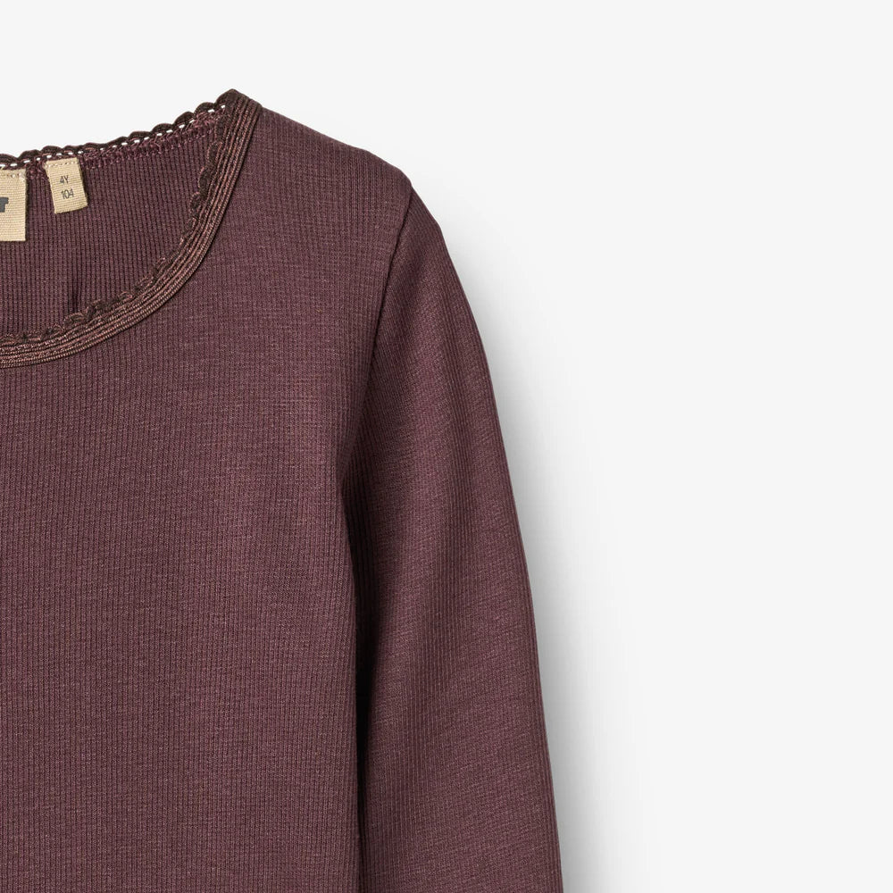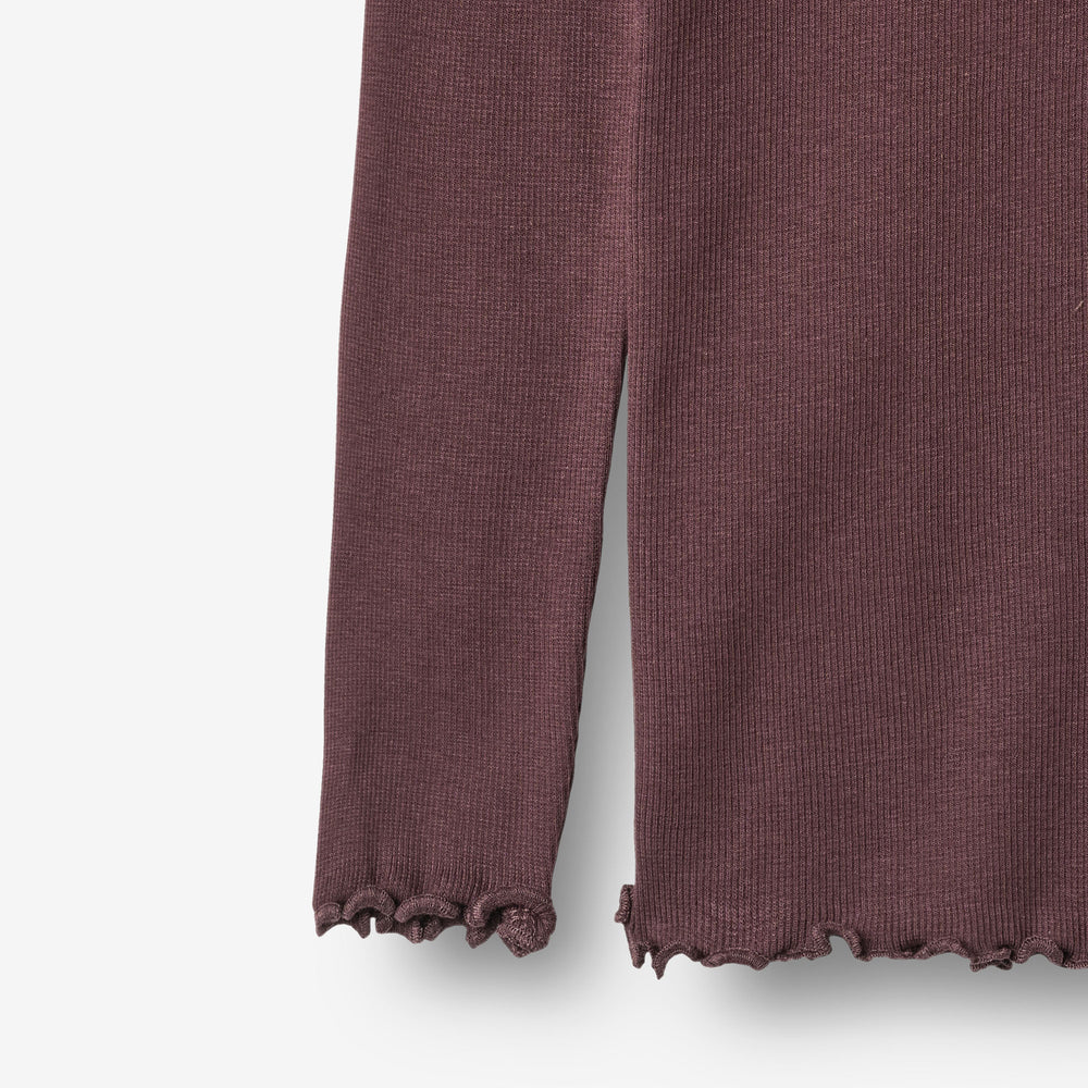 Rib Langarmshirt, dunkles lila