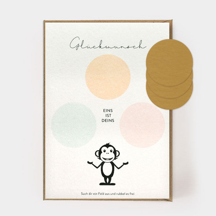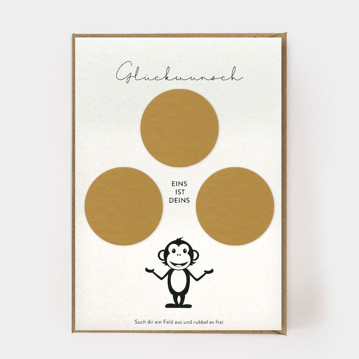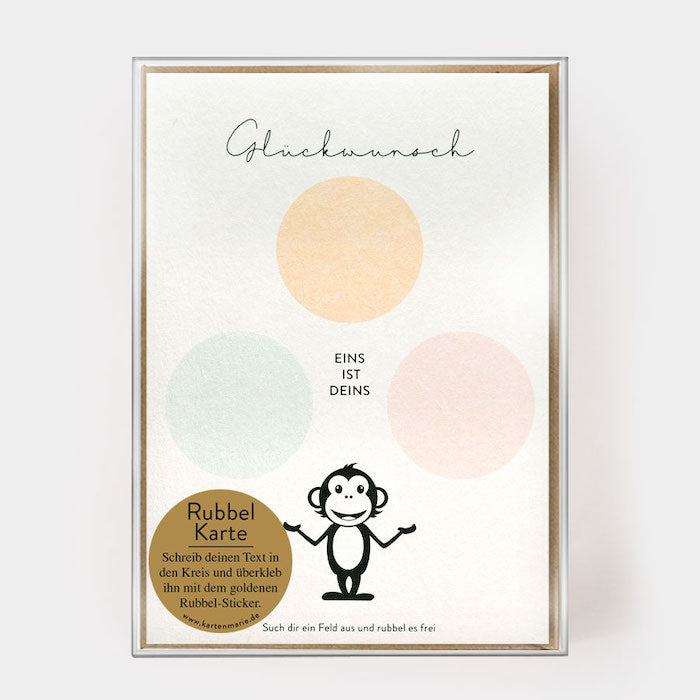 Schreib deinen Text in den Kreis auf der Postkarte und überkleb ihn mit dem goldenen Rubbel-Sticker.