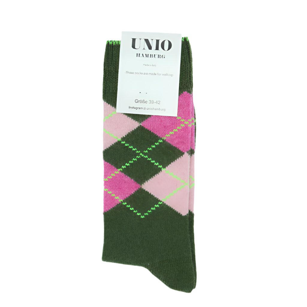 Die Socken von Unio schmiegen sich angenehm an den Fuss und sorgen durch die körpernahe Passform für ein komfortables Tragegefühl. Dank des feinen Woll-Mix mit Kaschmir-Anteil spürt man eine dezente Weichheit auf der Haut. Elastische Bündchen halten die Socken den ganzen Tag zuverlässig an Ort und Stelle.