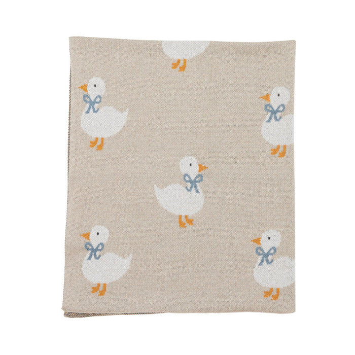 Eine bezaubernd weiche Strickdecke, die man vielfältig von der Geburt an verwenden kann. Ideal für zu Hause als warme und angenehme Decke sowie als Krabbeldecke zum Spielen und Entdecken. Sie eignet sich auch für Spaziergänge als Fußsack im Kinderwagen oder im Autositz.