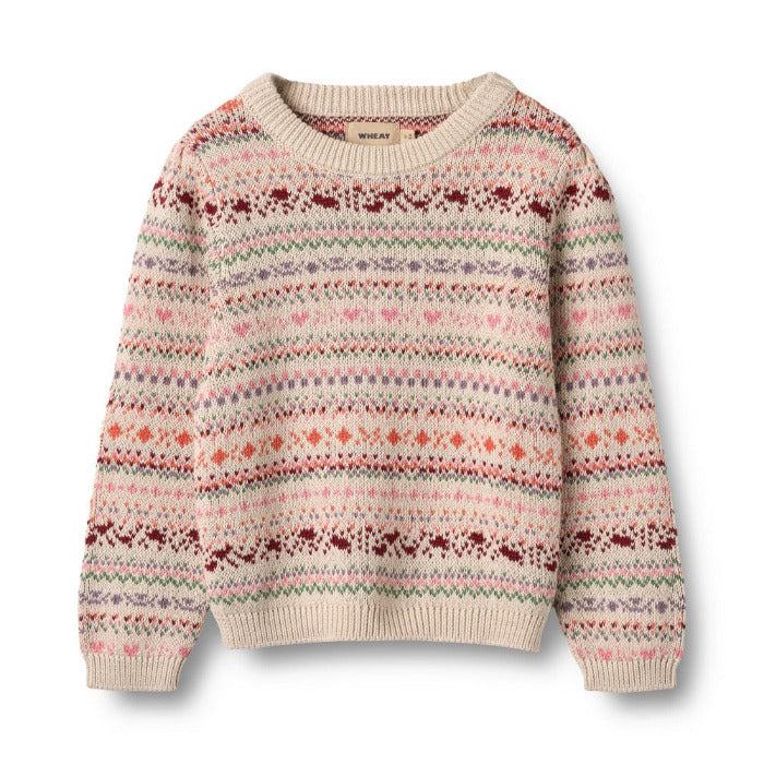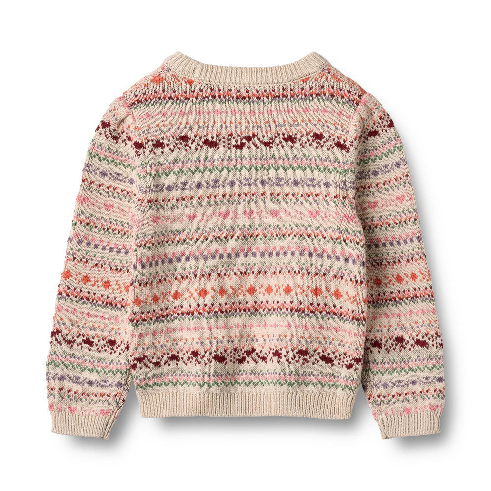 Langärmliger Strickpullover aus weicher Bio-Baumwolle für Babys und Kleinkinder. Eigenschaften: Normale Passform, Raglanärmel, Rippbündchen an Halsausschnitt, Bündchen und Saum, Öffnung an der linken Schulter, Einzigartiges Jacquardmuster Die Strickmode von Wheat ist ein echtes Must-have für die wechselnden Jahreszeiten, denn sie ist weich und angenehm zu tragen, ohne zu kratzen. Unsere Strickpullover haben einen klassischen Look mit entspannter Passform, sodass sie je nach Wetter und Anlass problemlos mit Leggings oder über einem Kleid kombiniert werden können. – Standard 100 by OEKO-TEX® – 100 % Bio-Baumwolle – Das Produkt ist GOTS-zertifiziert