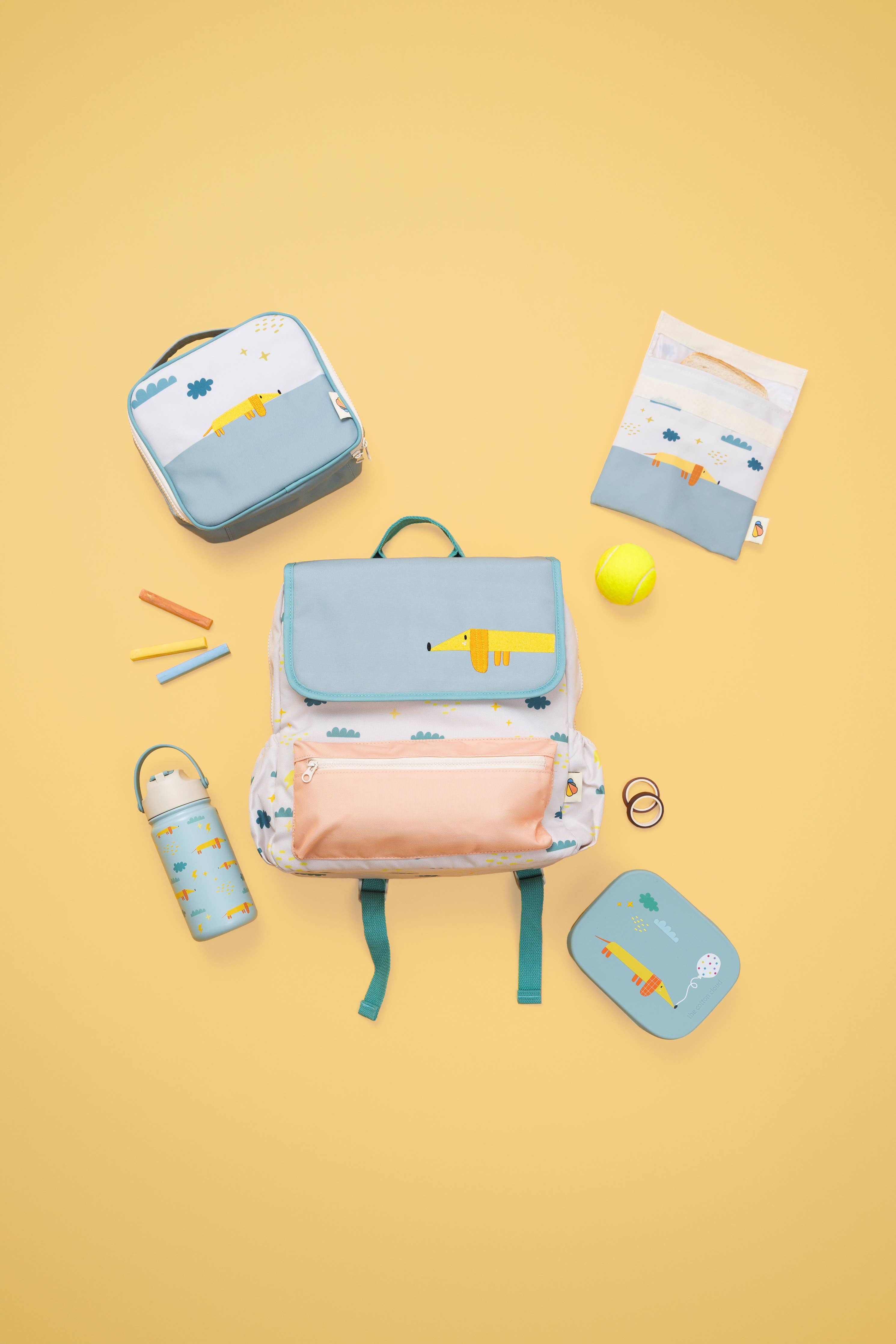 Turnbeutel mit Kordelzug, hellblau/Dackel