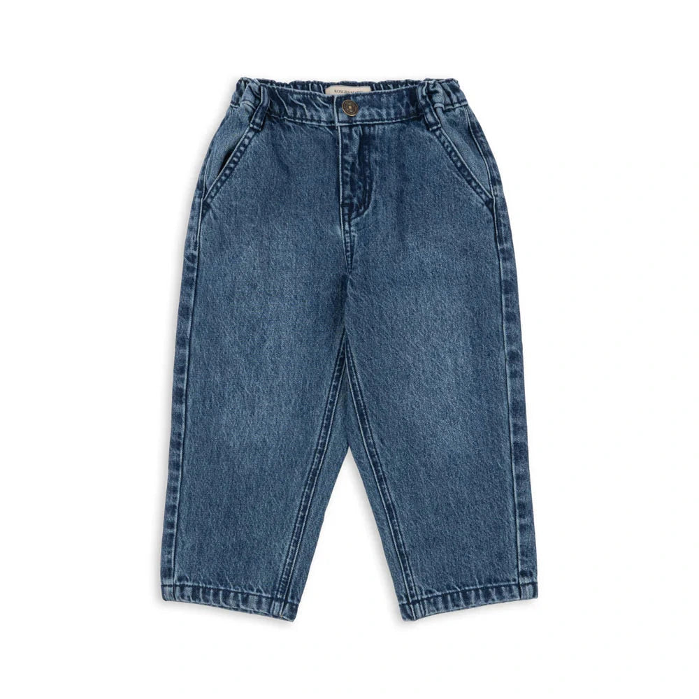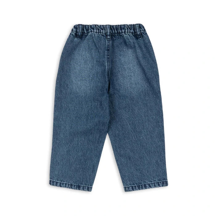 Klassische Jeans mit lockerer Passform, elastischem Bund, Gürtelschlaufen und einem Reißverschluss.