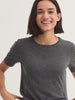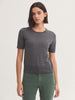 Schlichter Pullover mit kurzen Ärmeln aus Merinowolle. Rundhalsausschnitt und Rippbündchen.